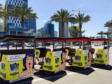 PedicaLIMO specializes in promoting and advertising the sponsors of San Diego Convention Center exhibitors offering a new unconventional approach to outdoor advertising. Unlike static signs or billboards pedicabs are interactively mobile, always on the move creating novelty and drawing attention.