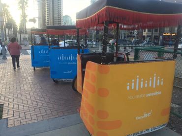 We specialize in advertising products or services of companies exhibiting at the San Diego Convention Center with a unique, fresh, and innovative approach by offering genuine outdoor marketing solutions through the use of fully wrapped branded pedicabs that catch the eye, powered by drivers that become brand ambassadors through the distribution of promotional items and by being dressed in uniforms that bear your brand name and logo.